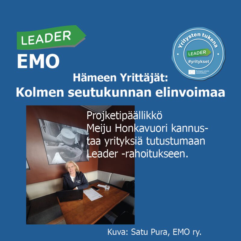 Honkavuori kokee, että Kanta-Hämeen yritykset eivät välttämättä tunne kaikkia Leader-rahoituksen tarjoamia mahdollisuuksia ja kannustaa yrittäjiä ottamaan yhteyttä hankeideoiden kanssa oman seutukunnan Leader -toimintaryhmään.